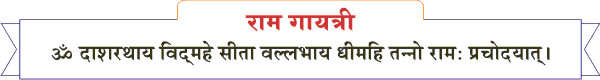 | ॐ दाशरथाय विद्महे सीता वल्लभाय धीमहि तन्नो रामः प्रचोदयात्। |