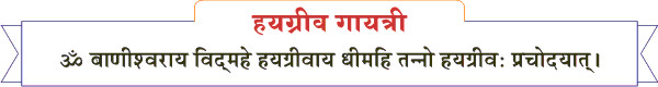 | ॐ बाणीश्वराय विद्महे हयाग्रीवाय धीमहि तन्नो हयाग्रीव: प्रचोदयात्। |
